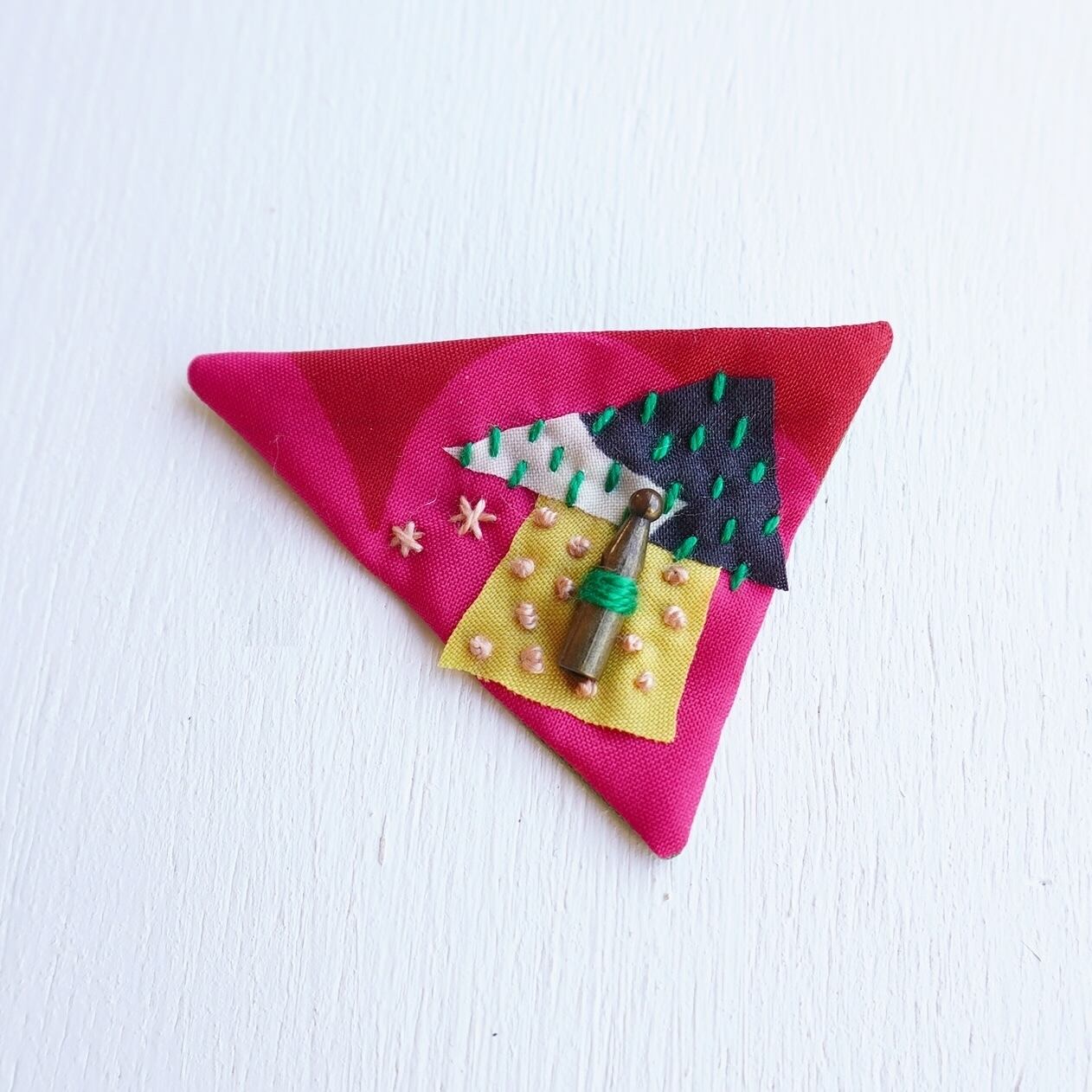 不用になった傘の布と露先に刺繍を施したブローチです。