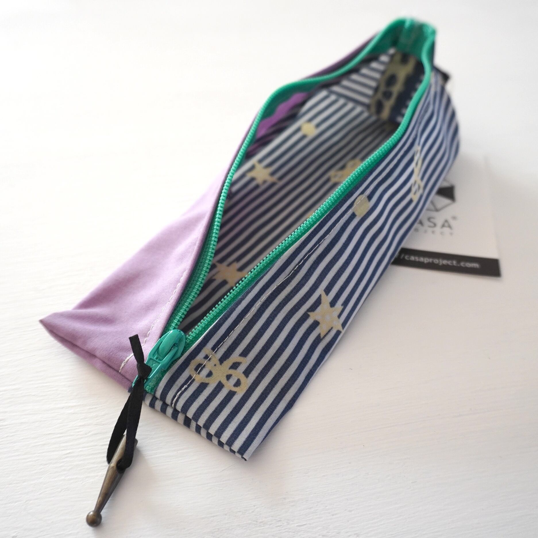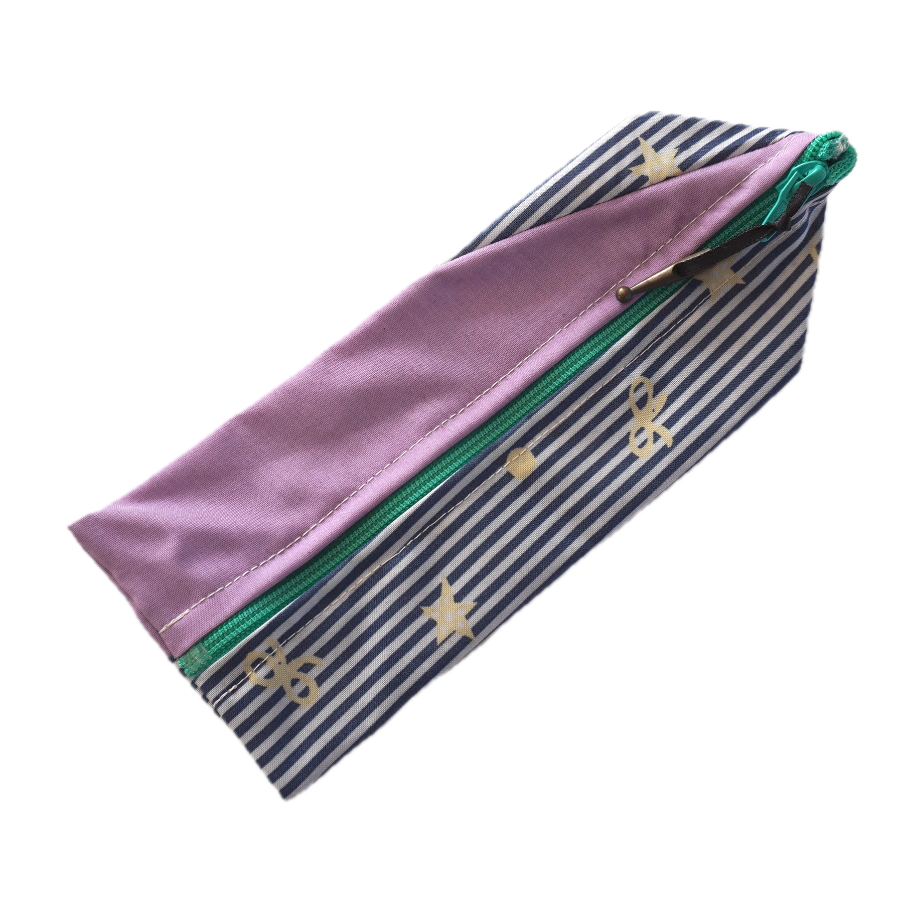 不用になった傘の布をつなぎ合わせたペンケースです。