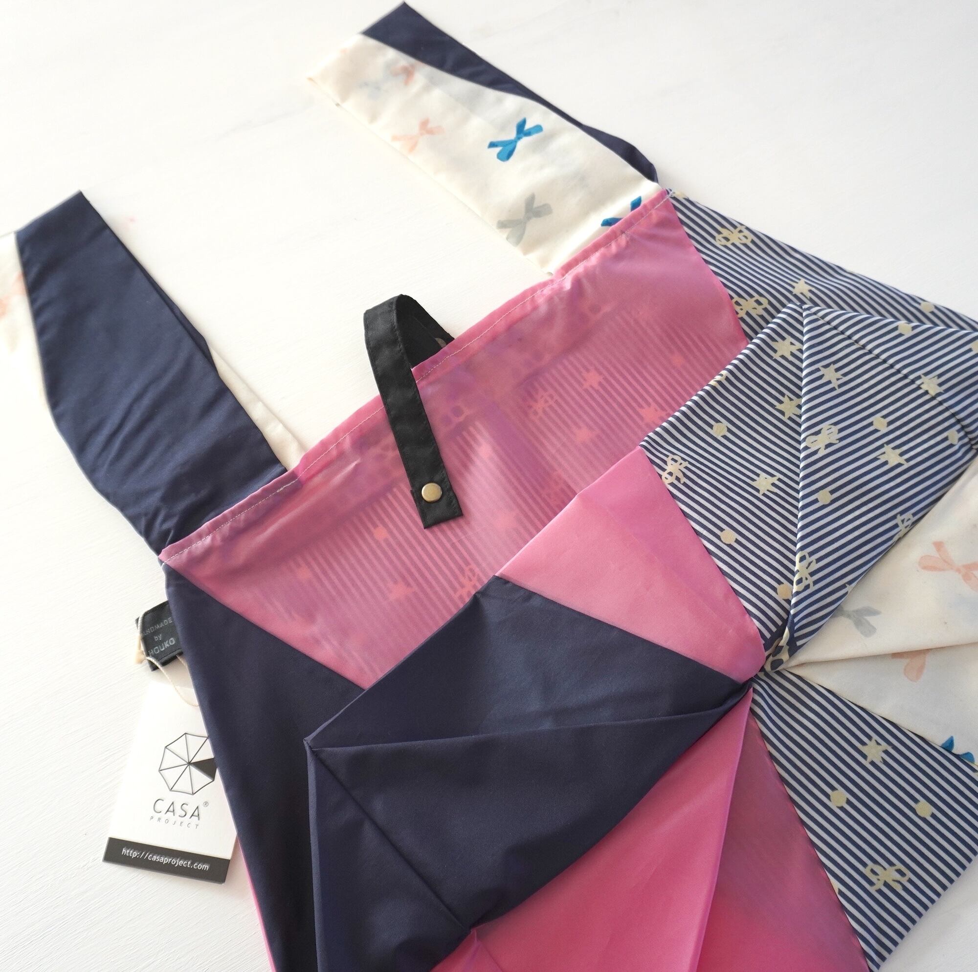 *この商品は、遺失物や廃棄物など不用になった傘の布をリメイクして制作しています。